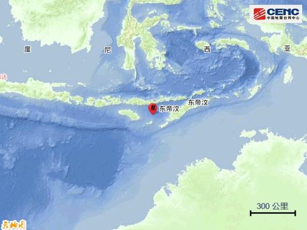 周边城市:震中200公里范围内有1座大中城市,最近为古邦(Kupang),距震中约168公里。