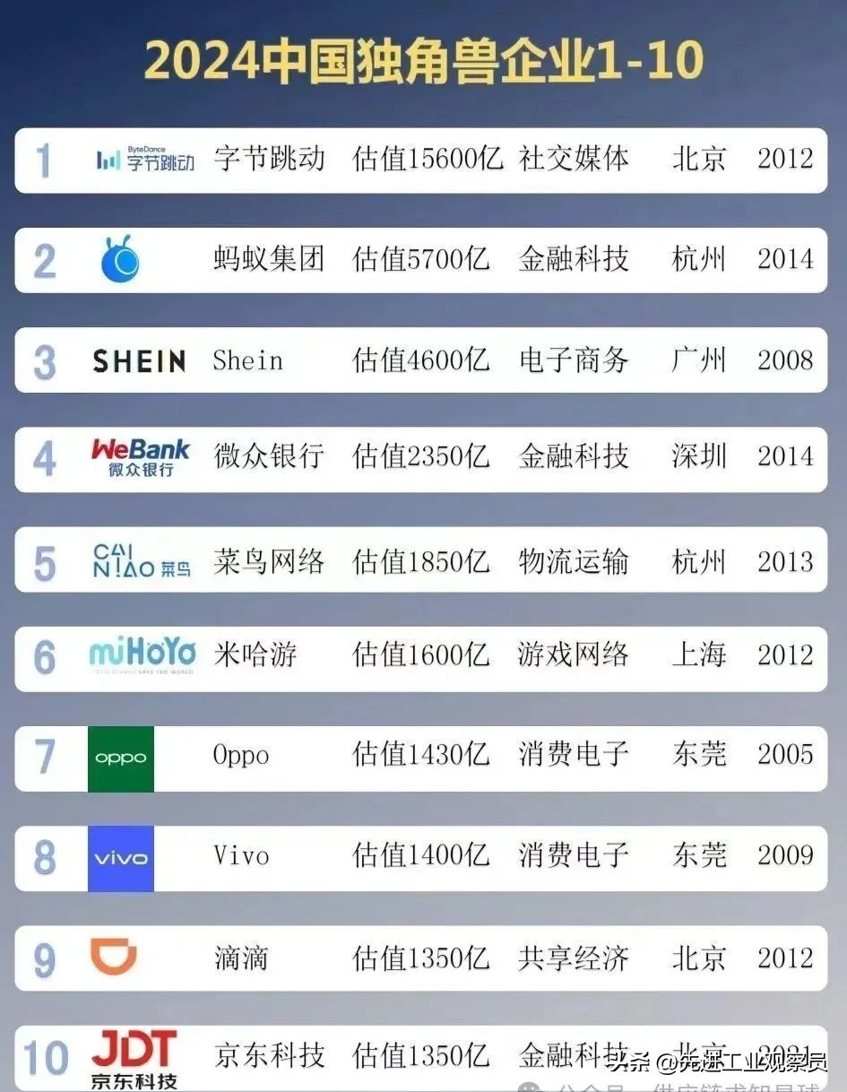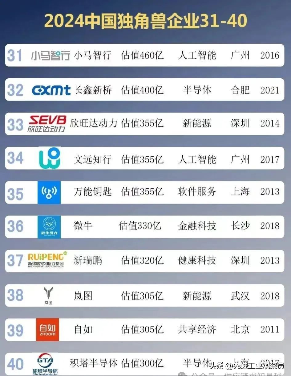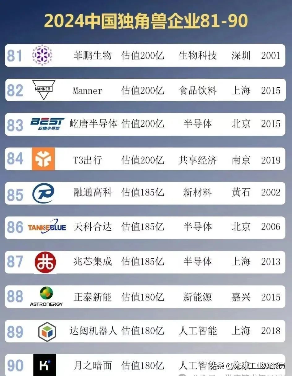 2024 年中国独角兽企业排行榜前十:领军企业纷纷登榜