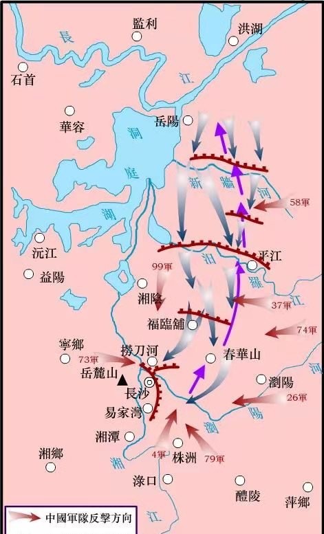 1939年9月14日,“长沙会战”开打,日军10万兵力分三路,从赣北、湘北及鄂南向长沙进攻。薛岳率领第九战区20万兵力应战。双方一路从新墙河打到汨罗江,再从汨罗江打到捞刀河,三路日军都被中国军队击退。双方战至10月7日,中国方面伤亡近4万人,日军也损伤2万人,然后紧急向北方撤退。