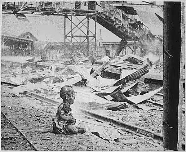 日军也轰炸火车站,沪杭甬铁路的起点——上海南站,数百名旅客死在月台上。美国知名的《生活》周刊,刊登了赫斯特新闻社记者王小亭所拍,名为“中国娃娃”的照片,轰动国际,就是在这里拍摄的。