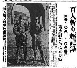 日军甚至发起了杀人竞赛,当时东京《日日新闻》刊登了一张日本军官的合照,左边是炮兵小队长向井敏明,右边是16师团副官野田毅。向井敏明杀了106人,野田毅杀了105人,他们朝150人为目标迈进。