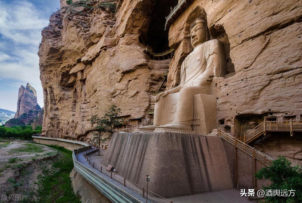 炳灵寺石窟,炳灵寺石窟开创于东晋十六国西秦时期,甚至更早,历经 1600 多年,最终形成今天的规模,分上寺、洞沟和下寺,主要分布在长 200 米、高 60 米的悬崖峭壁上。现存窟、龛 196 个,泥塑 82 身,石佛雕像 694 身,壁画 900 多平方米。最大的唐代弥勒坐佛高大 27 米,比山西云冈石窟最大的石佛像高出 10 多米。2014 年,作为丝绸之路的一部分, 成功入选《世界遗产名录》。