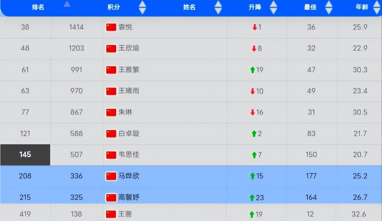 除了郑钦文,中国其他选手在美网的表现也值得关注。袁悦、王欣瑜、王雅繁、王曦雨等选手在美网的表现各异,排名有升有降,但整体显示出中国女子网坛的强劲竞争力。随着越来越多的中国选手进入世界前百,中国网球正在国际赛场上崛起,成为不可忽视的力量。