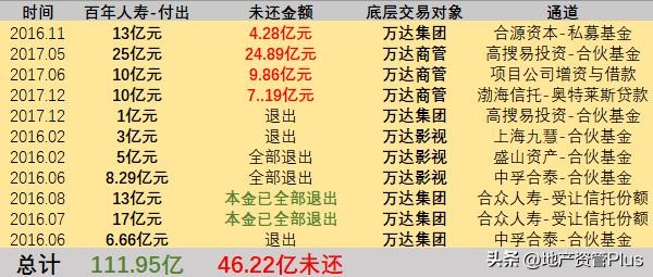 257.71亿中,百年人寿累计向大股东-万达及其关联公司,输血111.95亿。