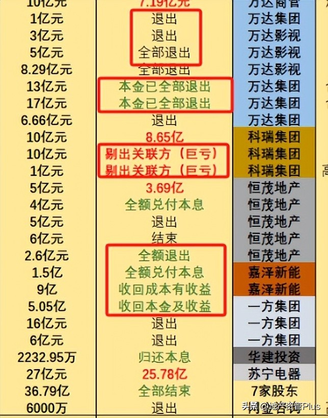 还有10个项目,总计57.55亿,只宣布:已退出、结束、全部退出,没有明确说明:本金是否全额拿回,是否全额退出。