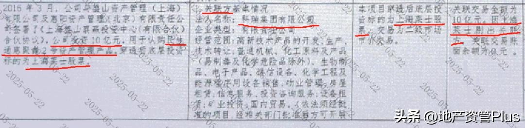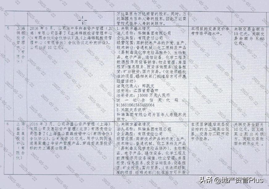 百年人寿出资10亿元出资,投向中孚和泰—锦靓投资管理中心,目前存在余额8.65亿没收回。底层关联方是股东科瑞集团。
