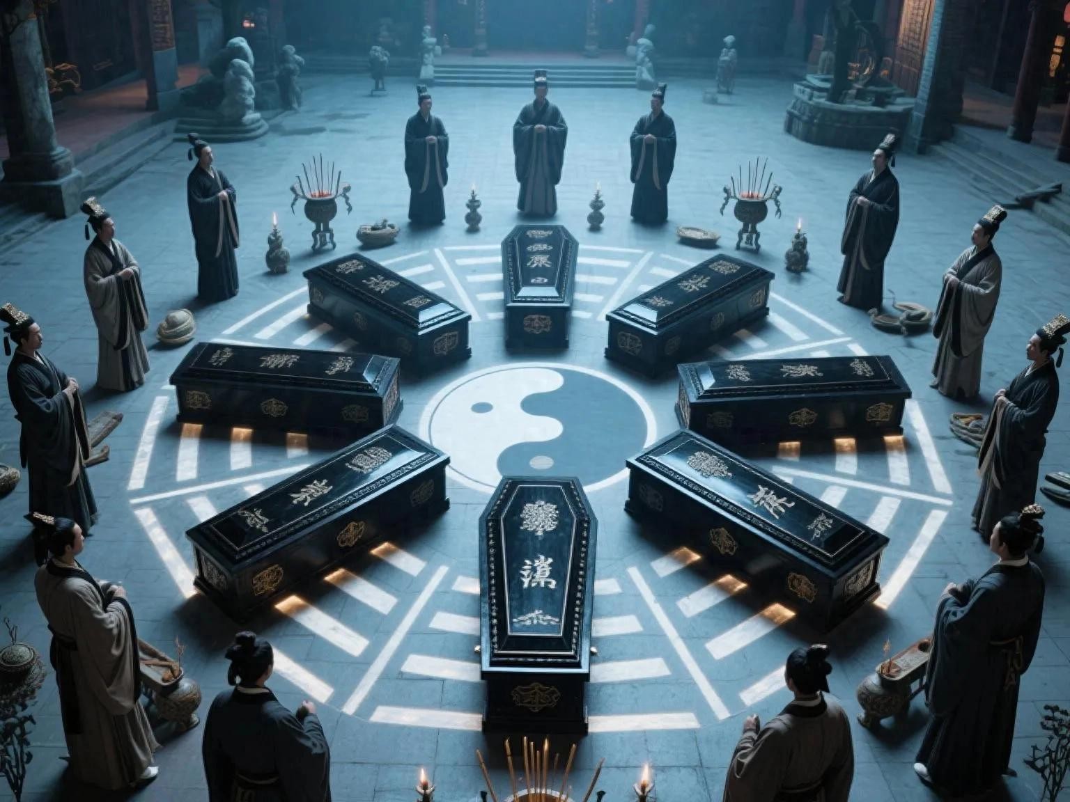 在施工过程中,一个更为惊人的发现震惊了所有人。施工队意外挖出了八口神秘棺材,棺木虽陈旧但封钉崭新,雕刻着诡异的花纹。风水师闻讯赶来,惊呼此为“八棺镇邪术”。在古代,高人常以八口棺材镇压鬼门,防止恶鬼作祟。而另一种说法则认为,这八棺实则用于“拘魂”,吸引方圆百里的野鬼聚集,形成“鬼门关”。施工方为赶工期,擅自焚毁了这些棺材,意外破坏了原本的风水格局,从而引发了后续的一系列离奇事件。