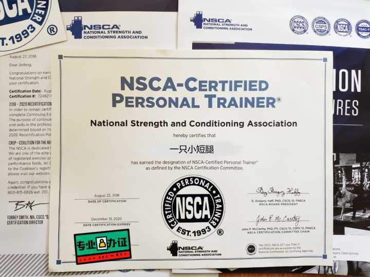 其中NSCA-CPT,CSCS,TSAC-F是同类认证首批获得NCCA(美国国家认证委员会认证机构)的认证证书。NSCA 始终坚持运用优质的教育、训练以及测试标准,确保每位获得 NSCA 认证证书的考生拥有高水平的知识和专业技能。