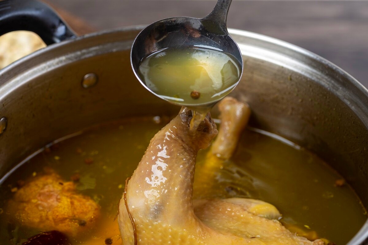 鲁菜在追求鲜味的道路上还十分擅长用汤,因为在鲁菜中汤被认为是百鲜之源,菜肴要通过用汤来壮鲜,所以特别精于清汤和奶汤的调制。在鲁菜界还有一句关于吊高汤的顺口溜叫做“无鸡不鲜,无骨不香,无肘不浓,无水不纯”,一锅鲜香的高汤要由整鸡、整鸭、猪肘、火腿等食材精心熬制出来,毕竟高汤所能给菜肴提供的鲜是味精远远比不上的。