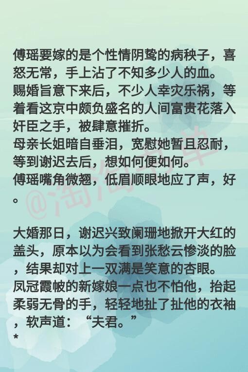 当初,男主成了状元郎,当街打马,意气风发,只是不经意的一撇,女主就爱上他啦,念念不忘很多年。小说一开始,是男主以身做饵,受伤生病后,女主很担心,男主妹妹看出女主心意,就请求皇帝赐婚,给男主冲喜。女主家里人都不同意,女主一门心思铁了心要嫁,被赐婚嫁给男主。