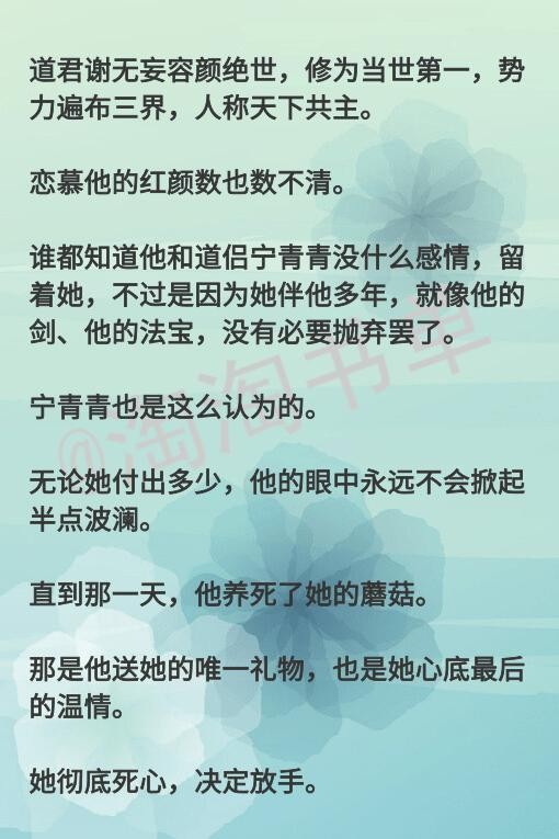 最后一次吵架,男主收下了别人送来的姬妾。而且,女主发现自己养了很多年的蘑菇,被男主养死了。(有原因)这下,女主和男主过不下去了。加上女主本来就有伤,也被人下蛊入魔了。然后,画风突变……