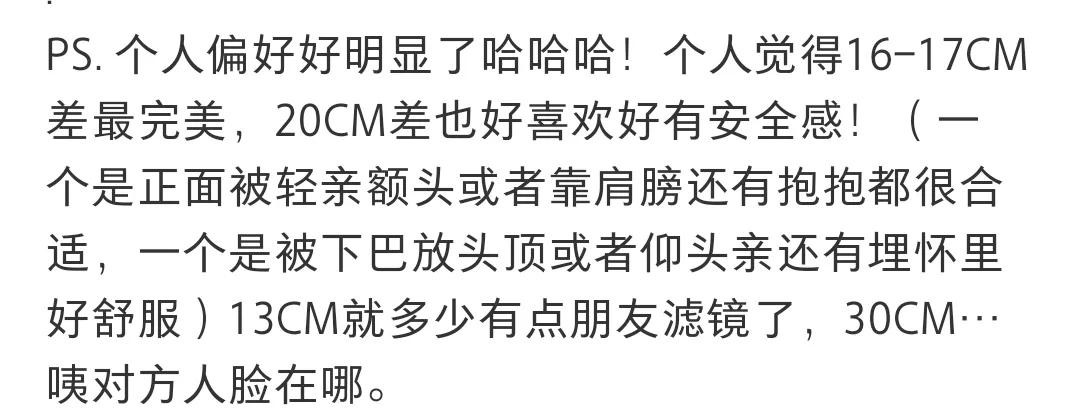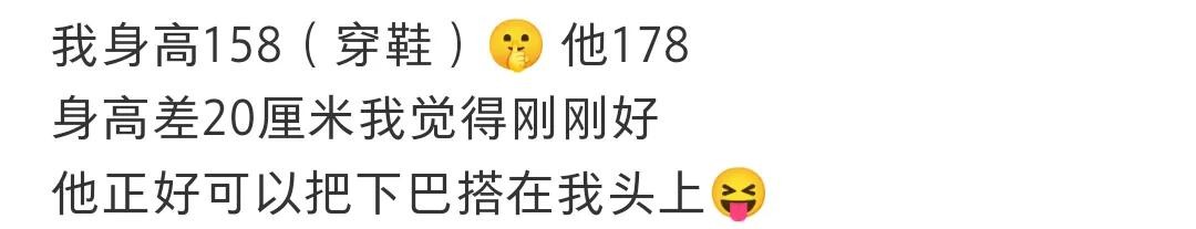①20 cm的差距,刚好能把下巴搭在肩上,这我还是第一次脑补画面,就是不知道有多少女生能同意这个做法呢?会不会挨揍。