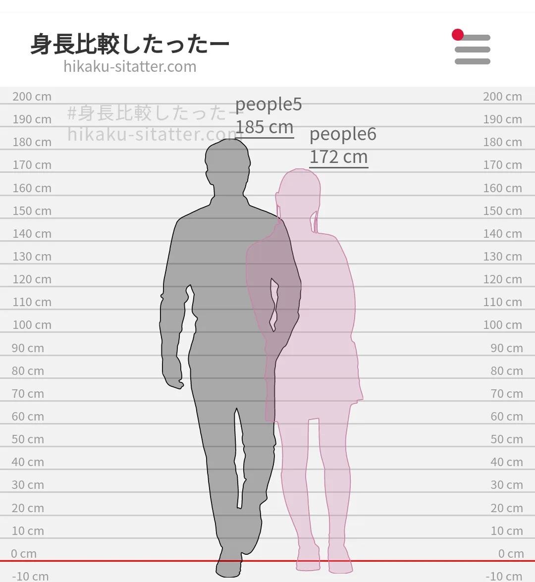 同时,通过不断挖掘,我还在评论区种草了一个身高差的模拟软件,假定男生的身高是185cm(这个假设绝不是因为我是185)那么差13厘米的女生应该是172cm,效果图如下: