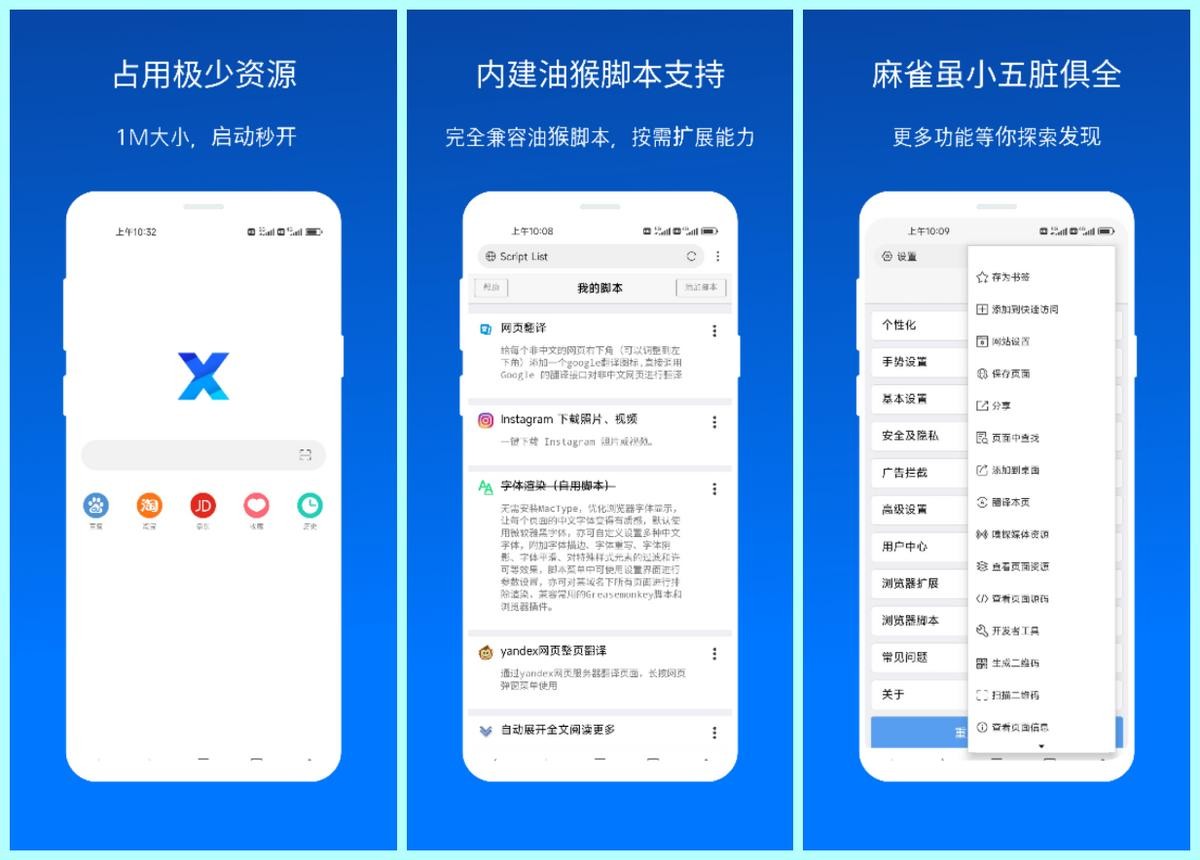 简单好用的手机浏览器,不仅没有任何广告,而且启动快,使用体验非常好。APP的厉害之处在于,它能完全兼容油猴脚本,我们可以根据自身需求,给浏览器扩充功能,让浏览器更加好用。