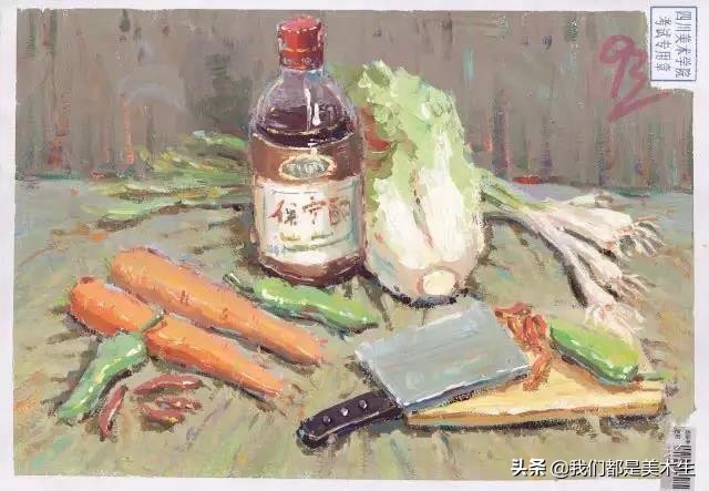 最后这张色彩,橘色的胡萝卜和整体的绿色调,画的非常舒服,而且塑造的也很精致。