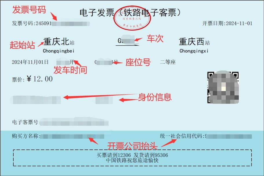 2024年11月1日起,在我国铁路客运领域推广使用全面数字化的电子发票——电子发票(铁路电子客票)。