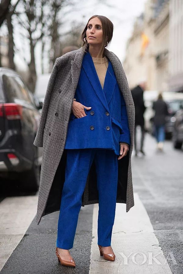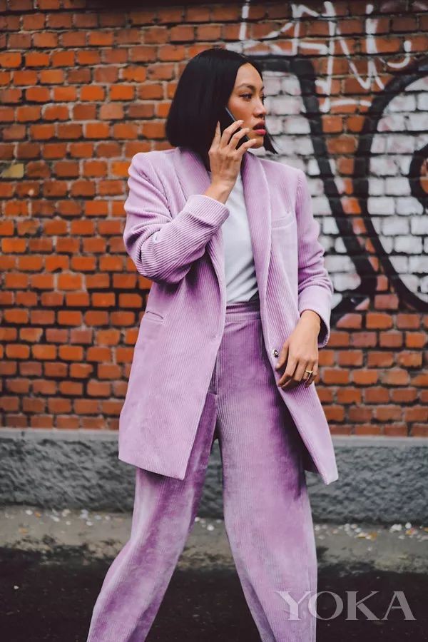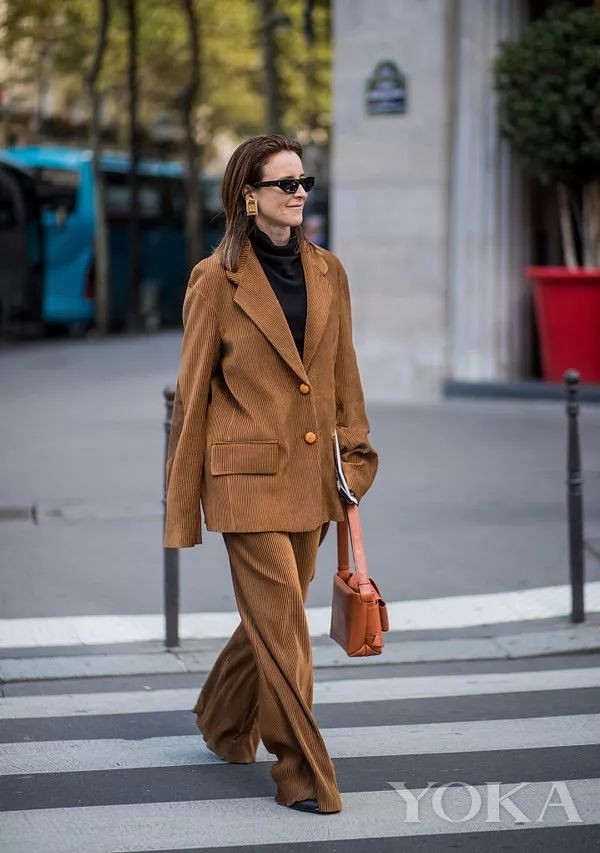 灯芯绒西装的廓形剪裁极为重要,oversized剪裁配上经典不衰的颜色极其时髦。