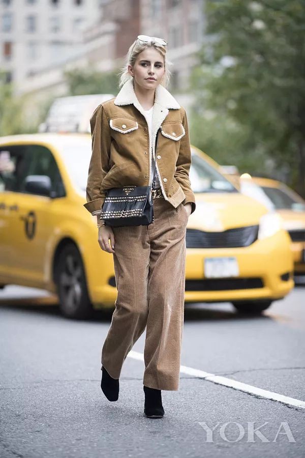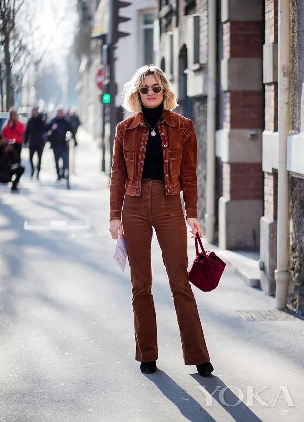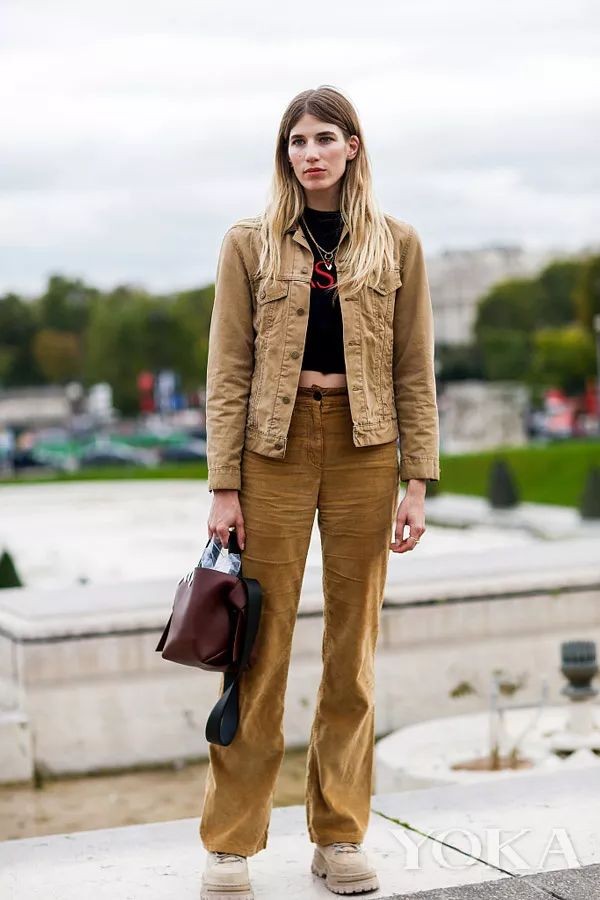 灯芯绒材质里要说最最受欢迎的单品要数灯芯绒长裤,搭配短款外套,巧妙避开了显胖、显矮这些缺点。