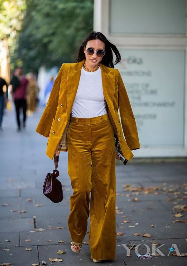 越来越多的灯芯绒单品以套装形式出现,一整套穿下来时髦得让人挪不开眼!