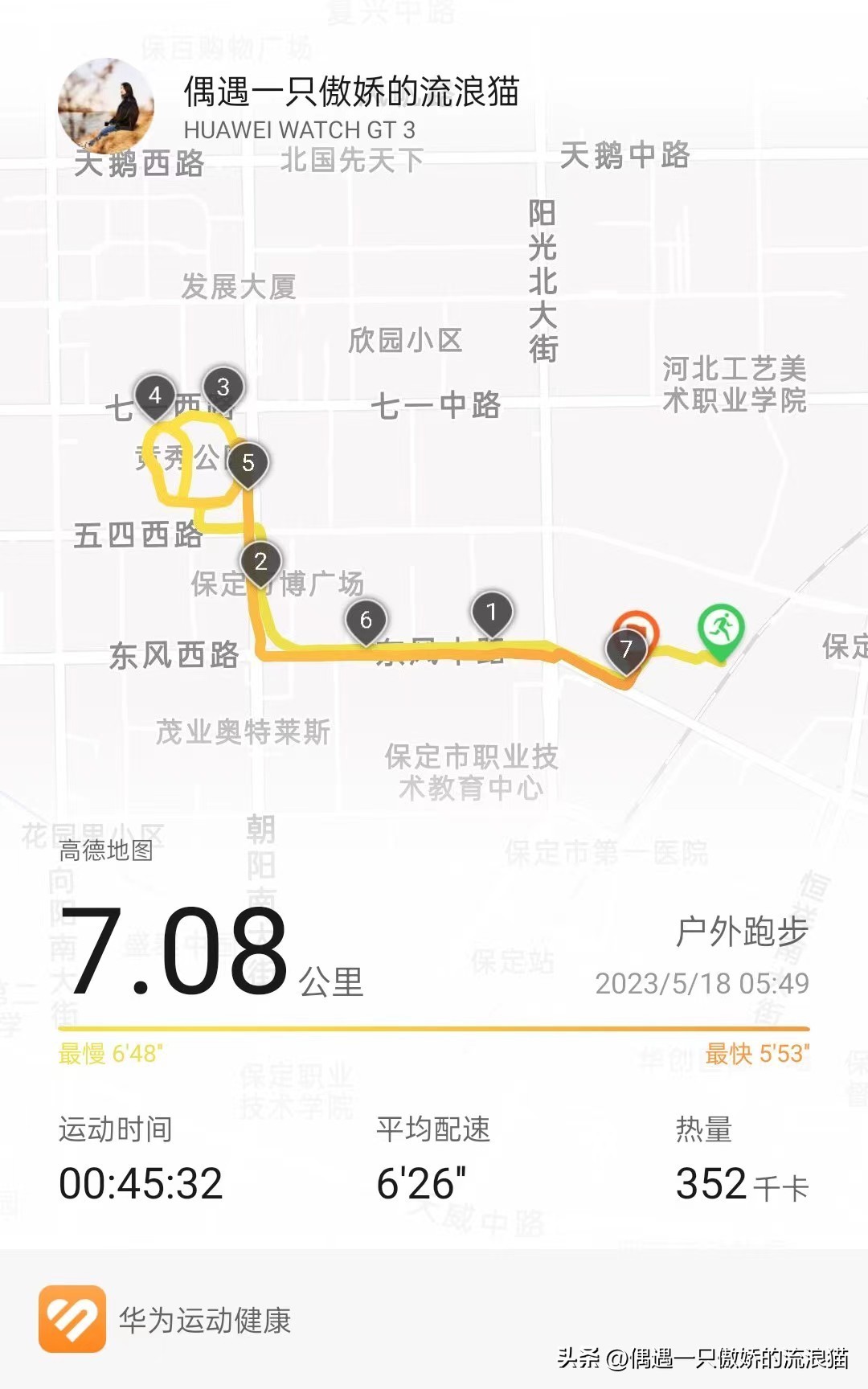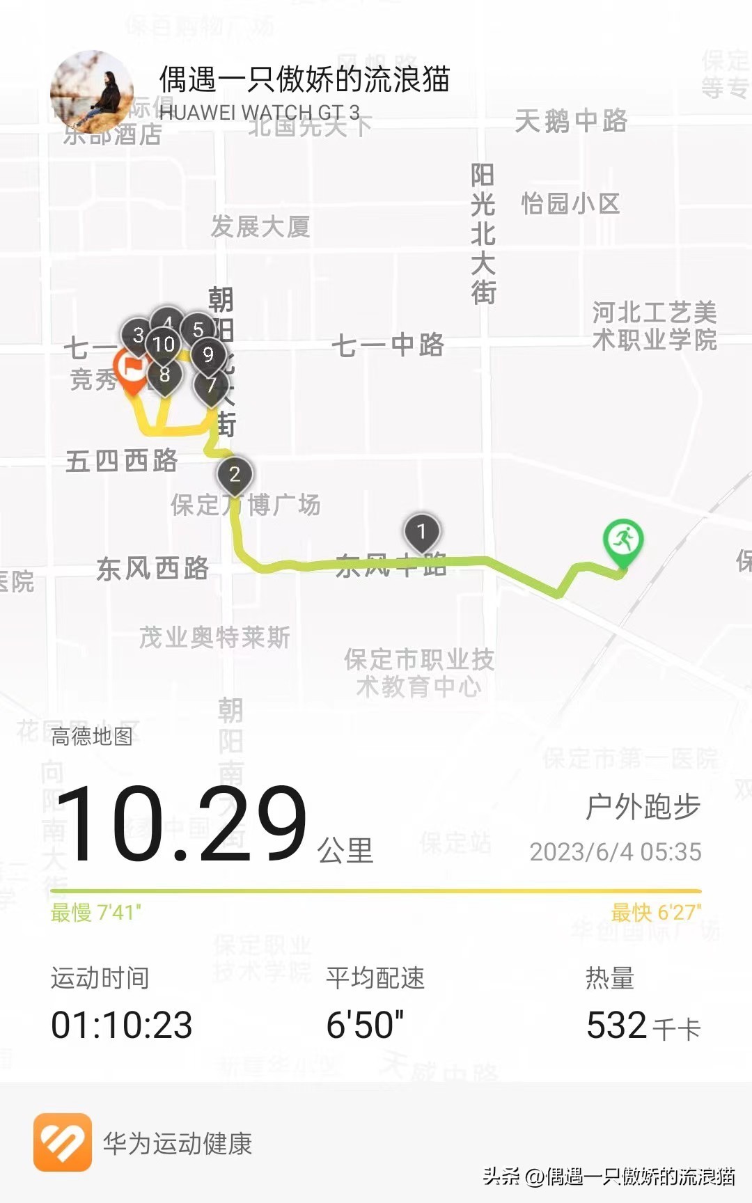 第五,养成早起的习惯。之前一直习惯夜跑,最近天热了,夜跑也会有点闷,夏天季节就改为晨跑,从6点左右到5点半左右,现在可以5点左右~一天之计在于晨,早起跑完步一天神清气爽,精神状态好了,自然心情和效率就会高。早起一直是困扰我的一大问题,没想到通过跑步竟然解决了。