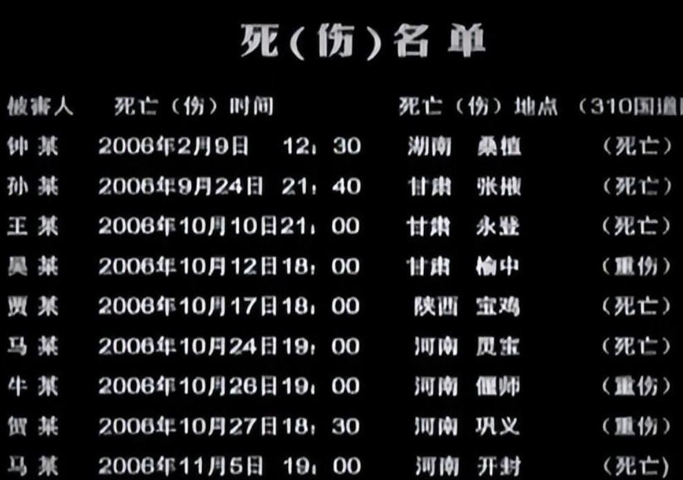 2006年10月10日他在甘肃永登,并且在这里看到了王赛芳,他又用同样的方法杀死了王赛芳,并且同样强奸了尸体。