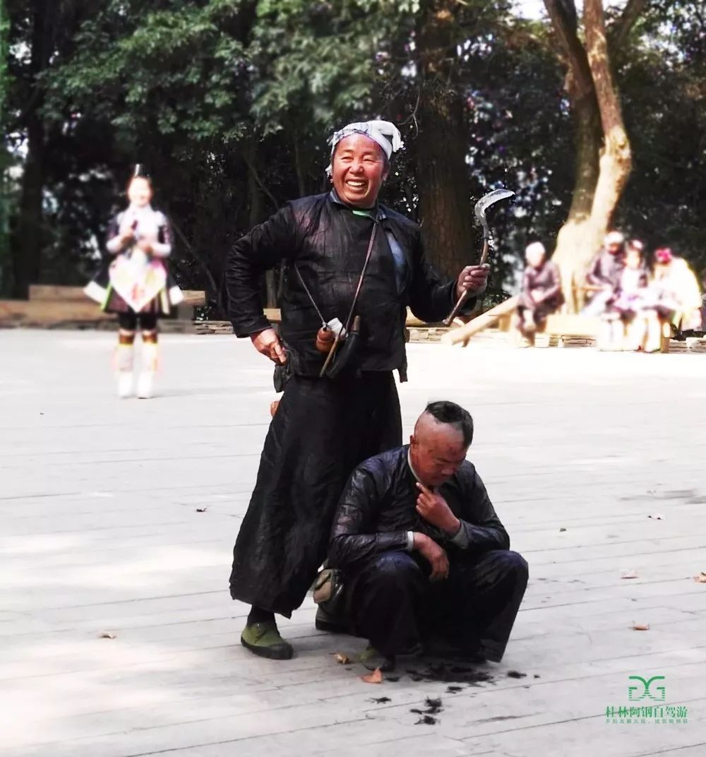 (点开视频,看看岜沙人是如何用镰刀剃头的吧)