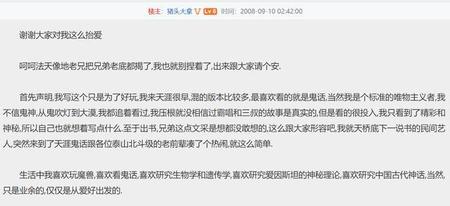 由于故事讲得太假,文笔也不太好,楼主猪头大拿(庞晓峰)被喷了,所以他在306楼出来解释,表示“我写这个只是为了好玩,我来天涯很早,混的版块比较多,最喜欢看的就是鬼话,当然我是个标准的唯物主义者,我不信鬼神……最近我的魔兽世界帐号被盗了,所以时间比较闲,就写了这个故事”。