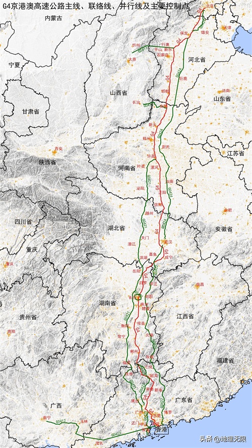 G4京港澳高速公路主线、联络线、并行线及主要控制点示意图