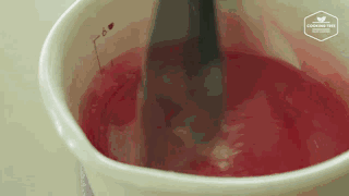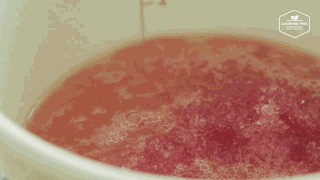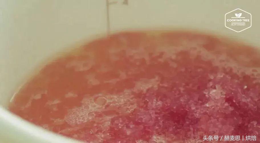 往锅里再打入蔓越莓汁与明胶的混合物