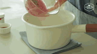 温度到达后往里倒入刚才玉米淀粉和水的混合物