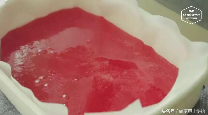 再在上面倒入刚刚弄好的红色糖浆