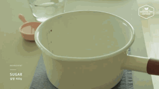 在锅内倒入400g糖和240g水、玉米糖浆2勺