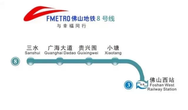 佛山地铁8号线由佛山市铁路投资建设集团有限公司负责建设,由佛山西站至西南,全长为18.9KM,将途经佛山西站、小塘,与西南中心组团联系。佛山地铁8号线与佛山地铁3号线在佛山西站设有换乘。未来三水还将规划两条有轨电车线路。