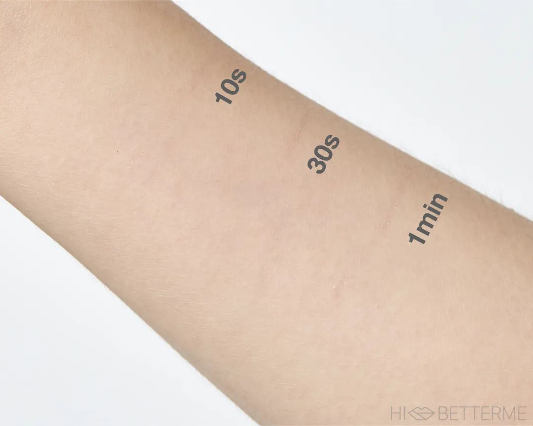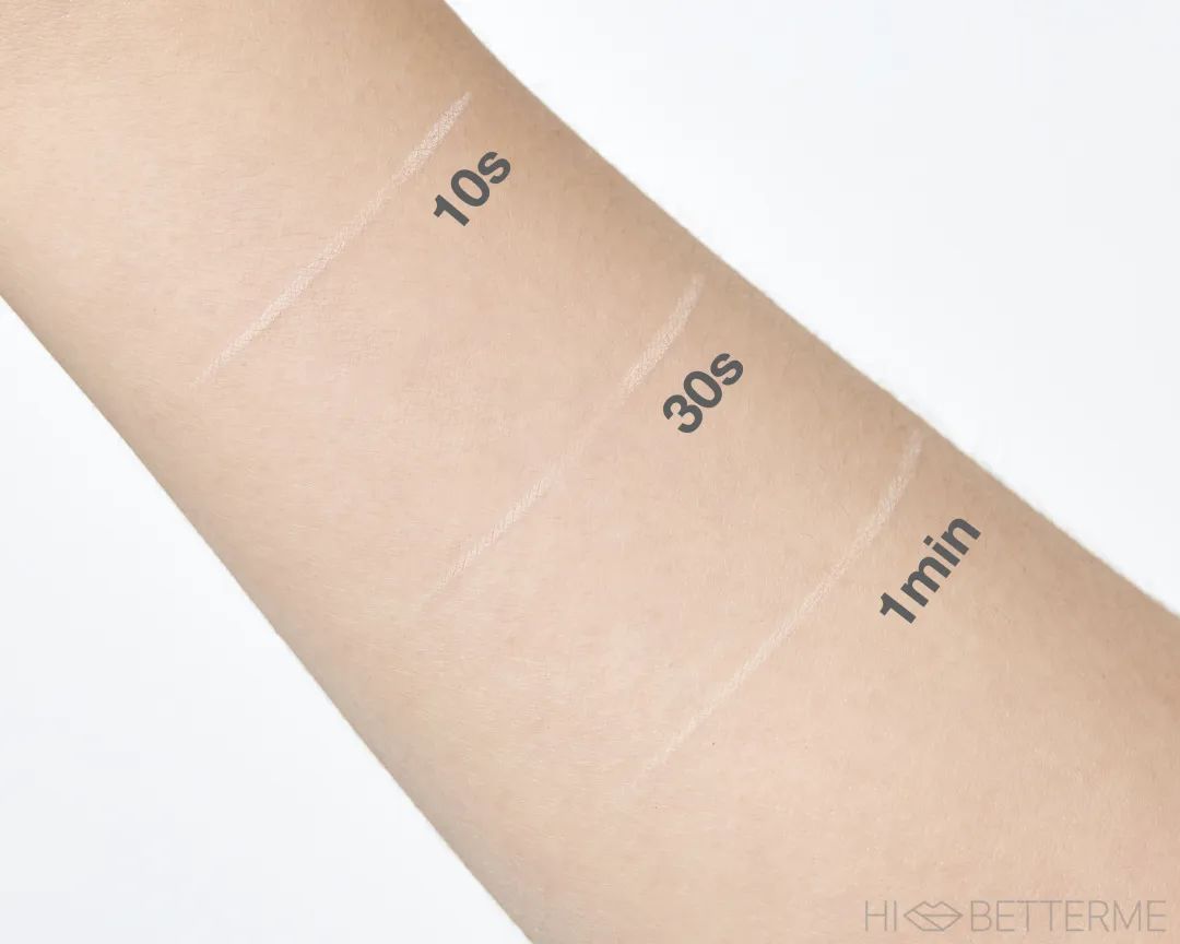 涂起来也特别顺滑,刚涂会有明显的湿润感,皮肤上泛着一丢丢水光的感觉,然后很快就干掉了。