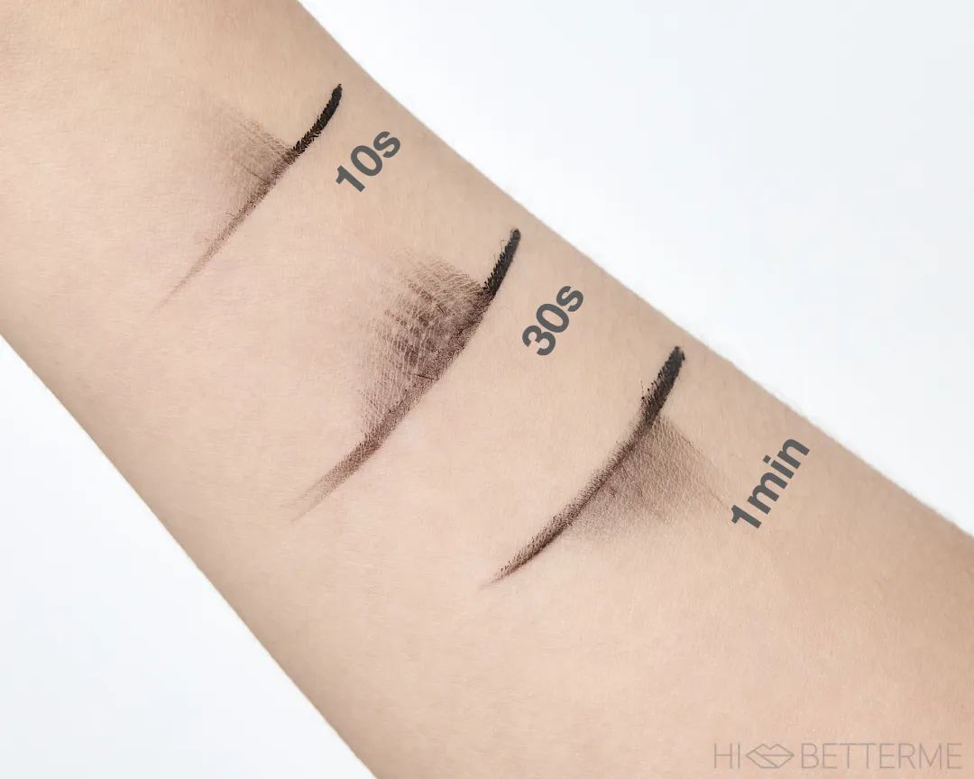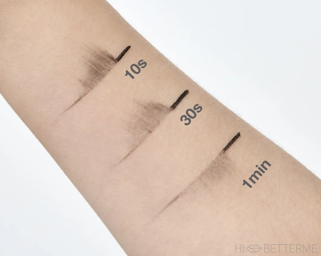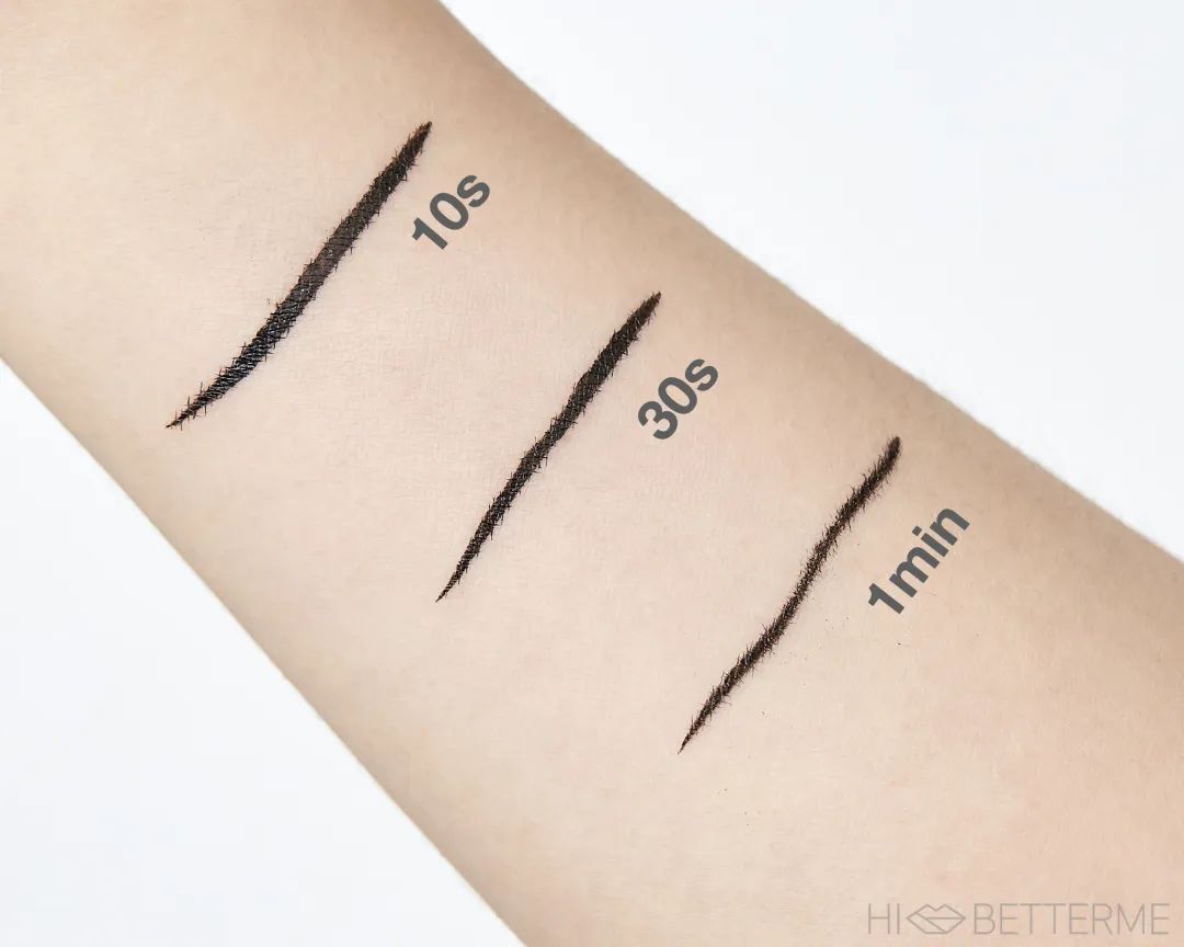 持久度这一块,它需要等待的时间比眼线胶笔和液笔都久,因为膏体本身非常湿润,所以要给它更多的时间来干透,大概得等个三分钟左右,才不会出现「妆没化完,眼线就晕开了」的现象。