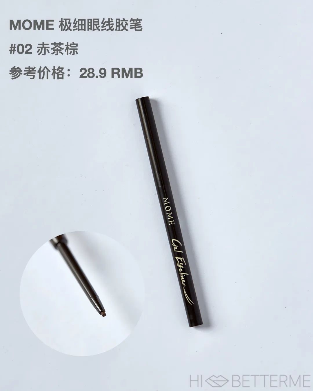 我选的是 #02 赤茶棕 这个色号,暖暖的深棕色,非常日常,淡妆就很可,我习惯用它填充内眼线,快速划拉几下就能拥有自然美瞳线。