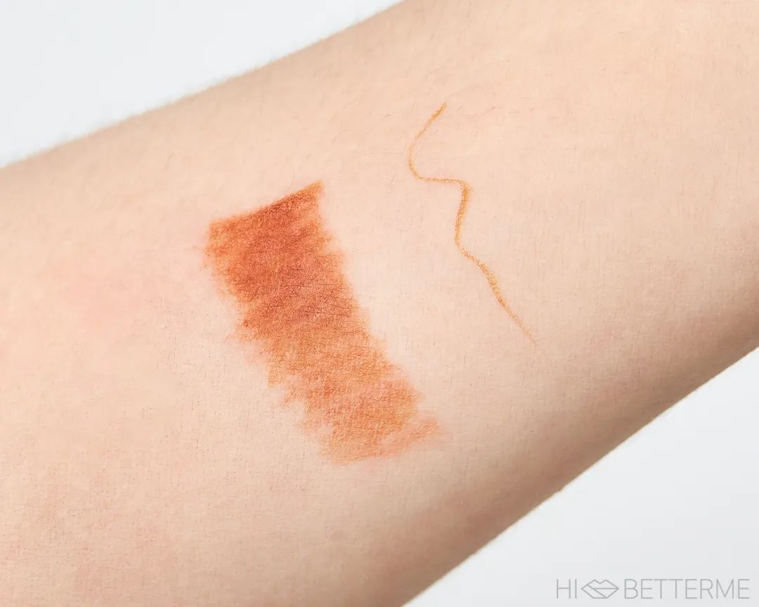虽然是橘色,但它的饱和度并不高,微微有点棕色调。我一般是把它和棕色眼线笔放在一起用,会让眼妆更有层次感,有时候犯懒,直接用它也没什么问题。