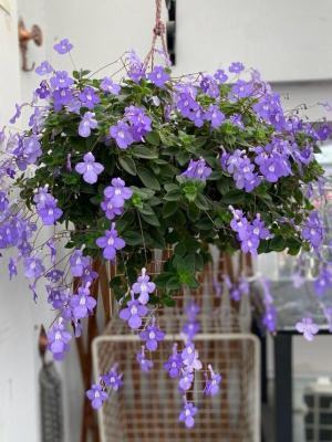 这是一款能够悬空吊起来养的绿植,花的名称及花语,叶子的背面是紫色的。