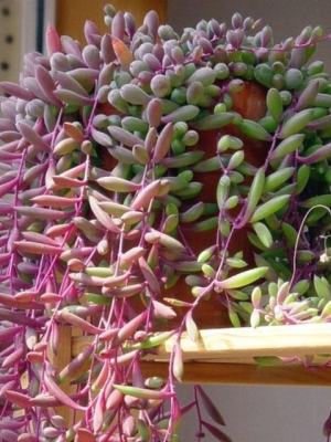 这也是一款多肉植物,但是相比较紫玄月,它的叶片要更圆,像珍珠一样。