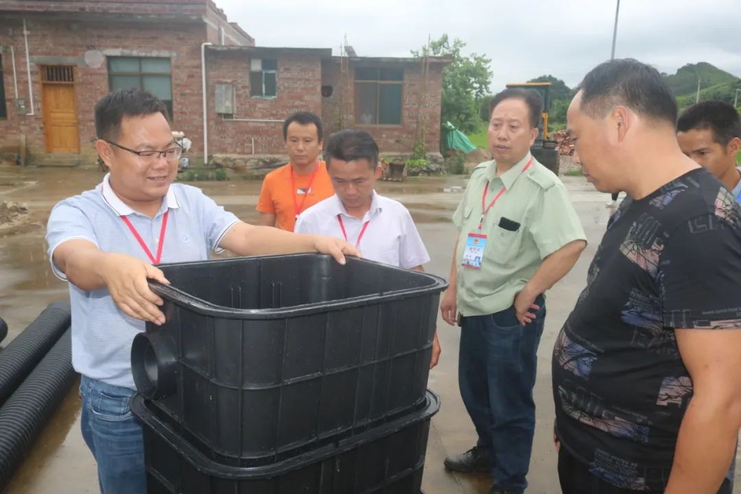 大良镇人大代表到新寨村中村屯实地查看污水处理项目。
