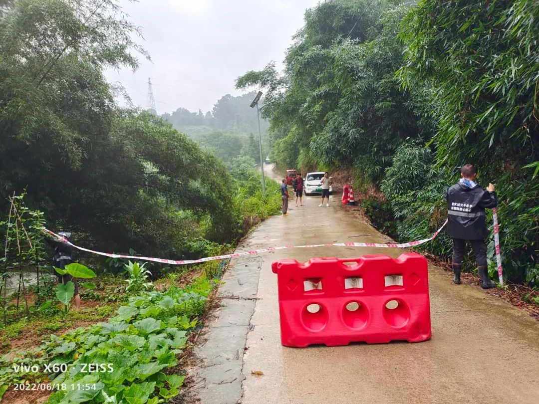 6月18日,长安镇干部在塘寨村交通安全巡查并设置设立警示标志。