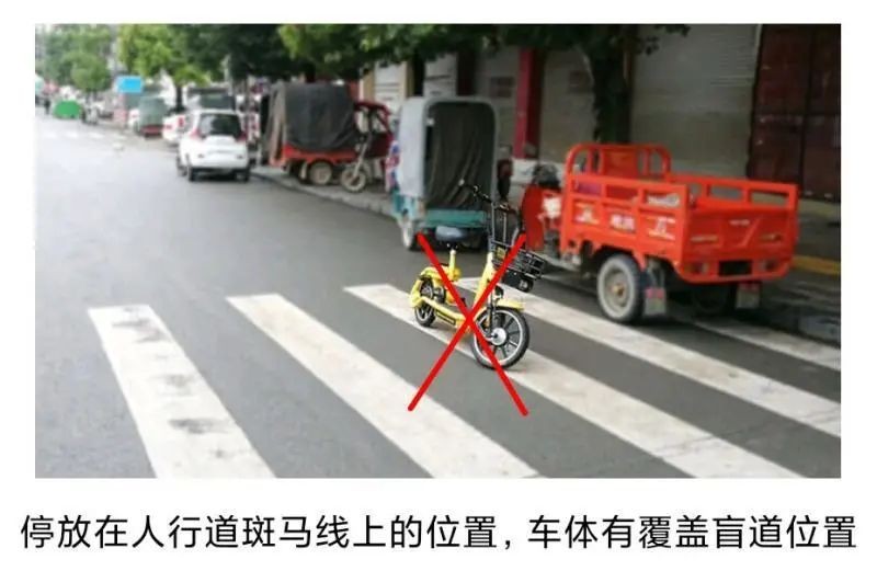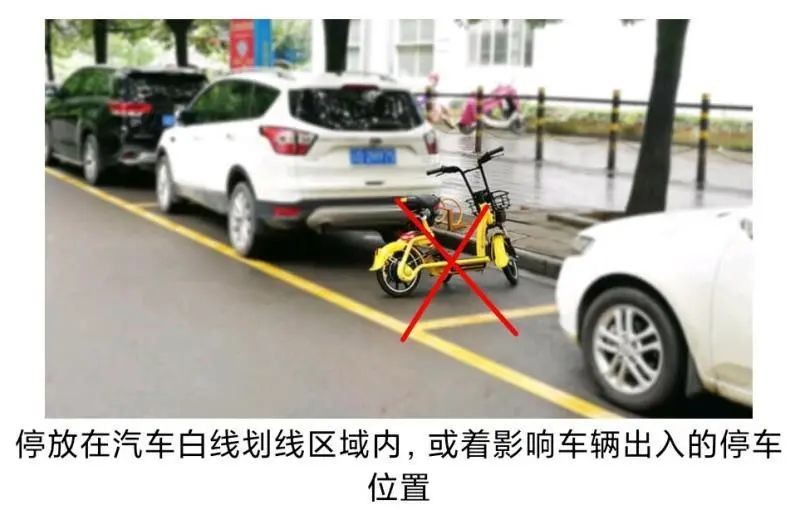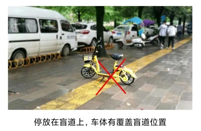 停放标准:停放至马路沿上人行道路(不要压盲线),不要影响车辆、他人通行;停放至马路沿下规划好的非机动停车位;