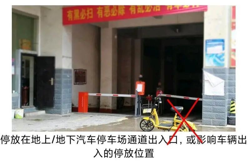 禁停区:马路沿下方、马路中间、绿化区域、道路施工区域、人行道斑马线、汽车停车区、停车场出入口、大型车辆旁、盲道上、楼道口内、人员聚集区、出入口通道处、建筑工地等;