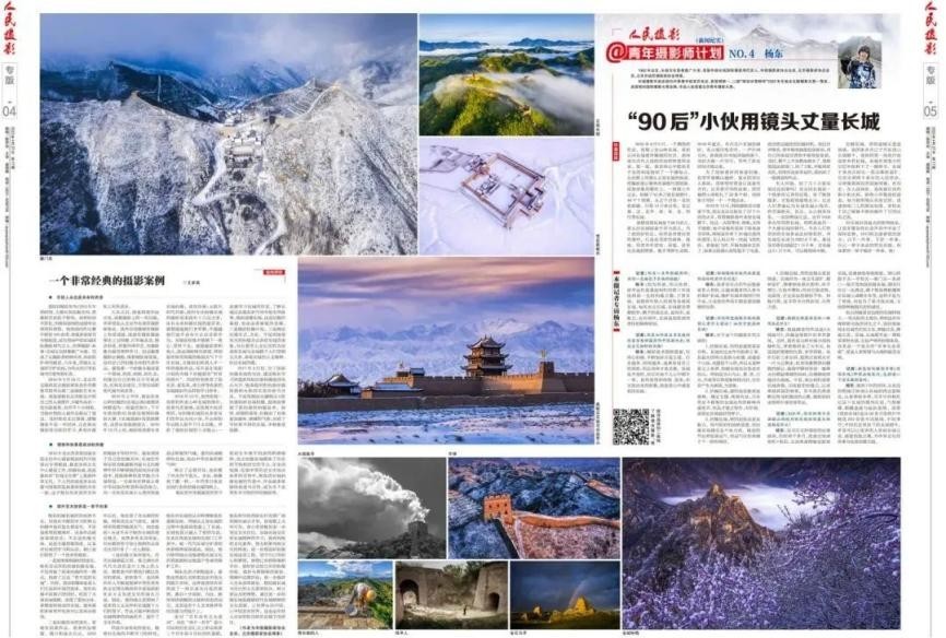 作为90后新锐长城摄影师、中国摄影家协会会员,杨东长城摄影作品在国际国内获奖百余项。他是央视《开讲啦》长城之美青年代表,也是首届中国长城国际摄影周代言人。他曾参与央视纪录片、北京冬奥纪实8K纪录片《万里长城》、北京卫视纪录片《长城长》创作。