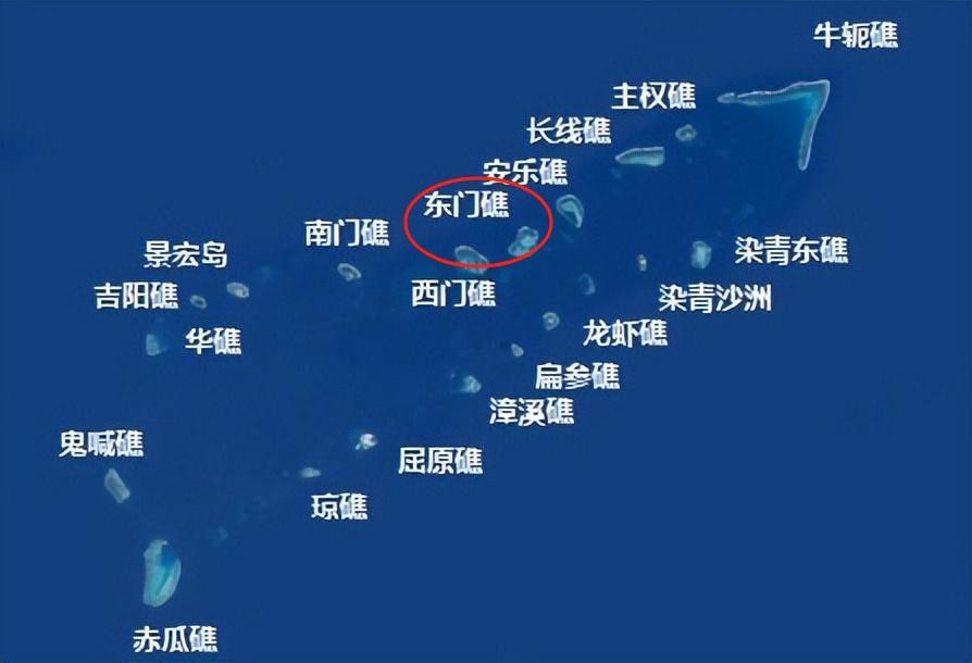 而这吹填的七座岛屿中,便有位于南沙海域的东门礁。