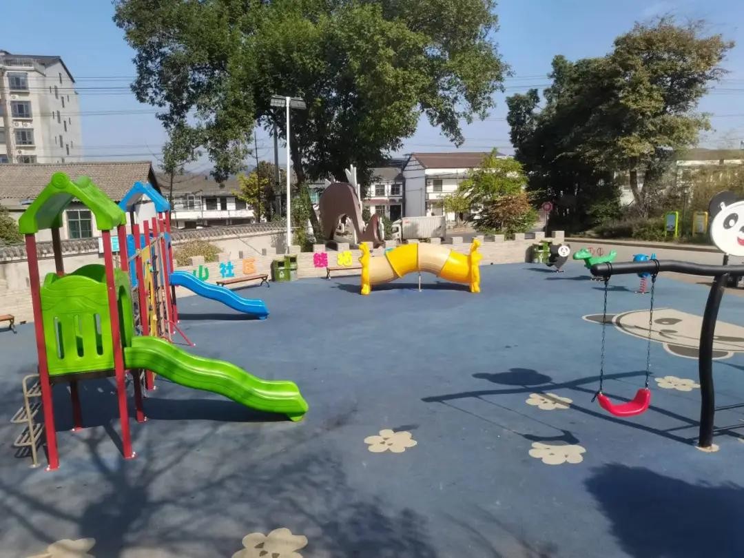冬日初至,岁寒渐浓。尖山上的竹林却苍翠依旧,仿若一道绿色的屏障,使得这个盘踞湘北的村落多了几分灵动,空气也分外的清爽。尖山下,易地搬迁集中安置区数十栋灰色楼房依山而建,整齐美观。中间的竹情大广场前,是一排健身器材和一个200平方米的儿童乐园,乐园里的安全地垫、彩虹滑梯、攀岩墙等造型充满童趣,这配套设施放在城里也是上档次的。