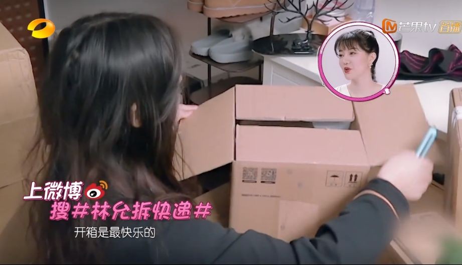 《闺女》第一期,林允出场时,为大家展示了美妆博主的真实生活,拆箱、拆箱、还是拆箱。