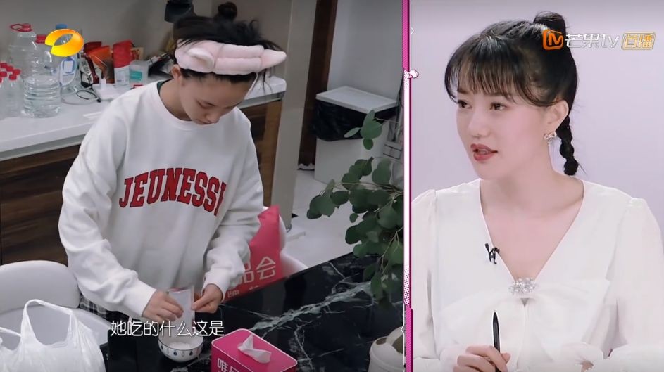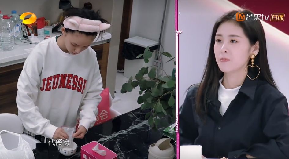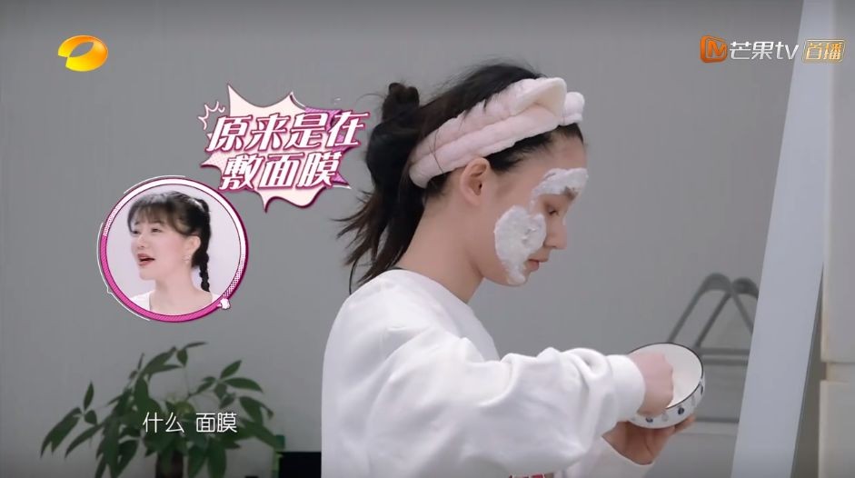 看到林允脸上厚厚的一层面膜以后,刘欣然又要补一句,什么代餐粉,那是面膜。