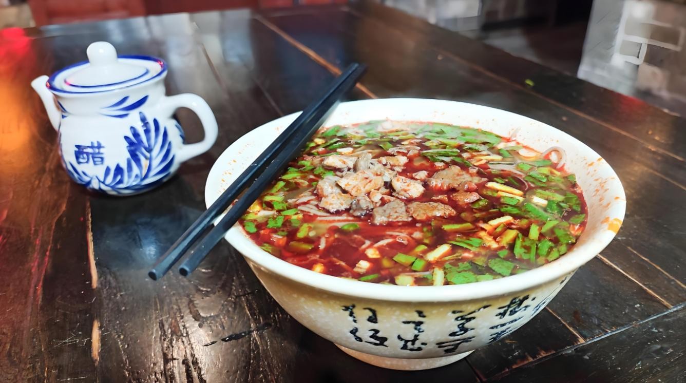 洛阳浆面条,是洛阳的传统小吃之一,有着独特的酸味,咸香适口。选用优质的面条,搭配上特制的酸辣浆汤。浆汤是浆面条的灵魂,由绿豆浆发酵而成,带有独特的酸味和香气。面条在浆汤中煮熟,吸收了浆汤的味道,变得更加爽滑筋道。再加上一些芹菜段、花生豆等配料,不仅增加了口感的丰富度,还增添了一份香脆。