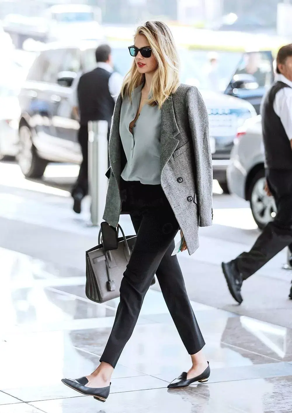 经典的黑白之外,那么好搭的就是灰色了,灰色自带高级又显肤色白皙,特别是对于年轻的小伙伴来说也不会太熟龄显老气;内搭丝质的衬衣,律政俏佳人出街。